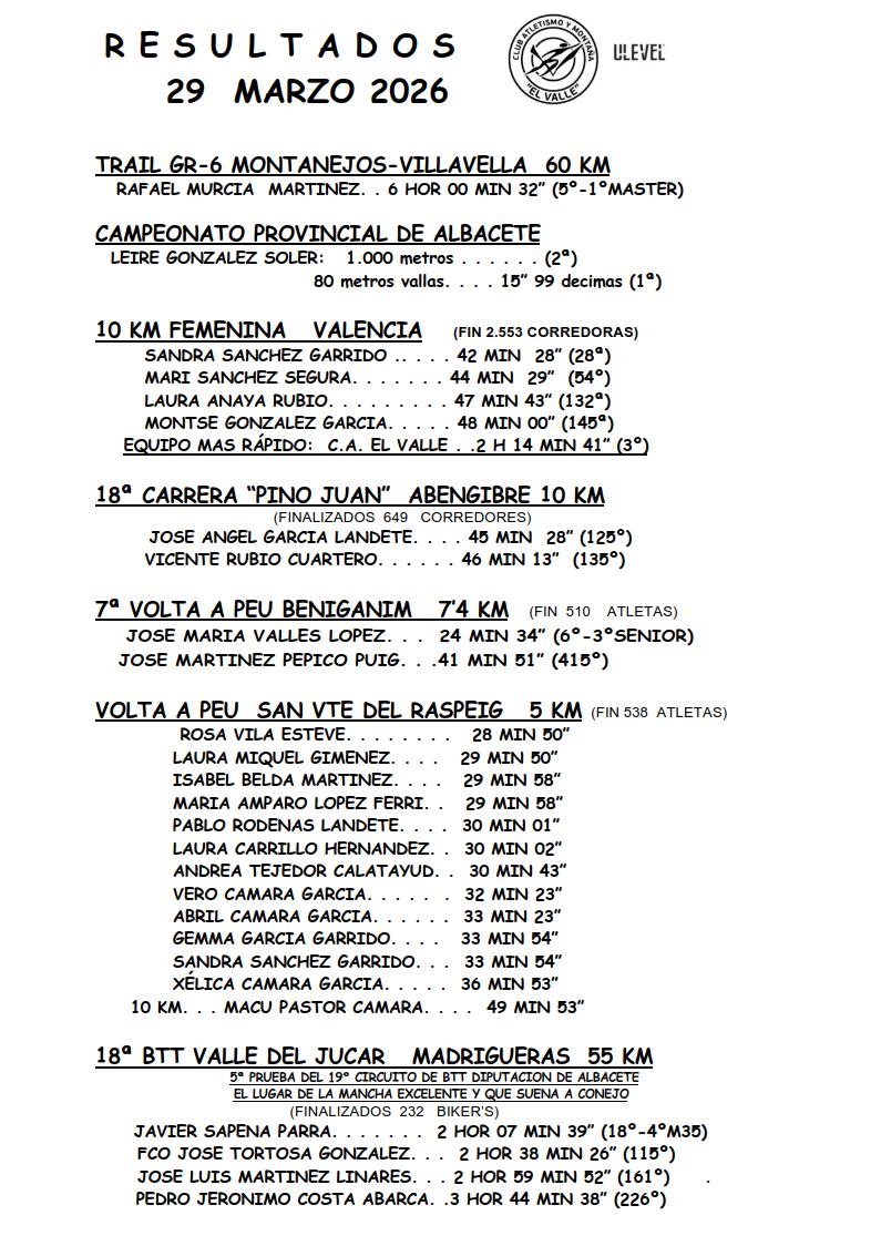 (8 y 16 euros SOCIOS Club Atletismo y Montaña El Valle)