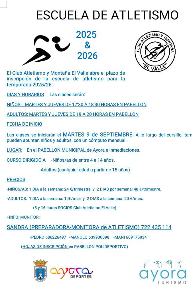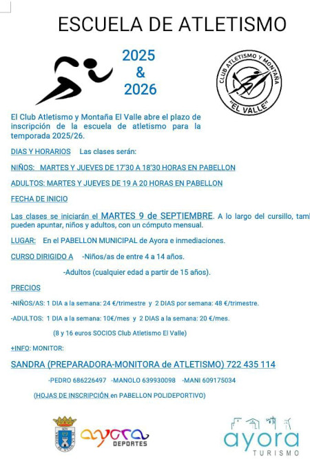 El Club Atletismo y Montaña el Valle abre el plazo de inscripción de la escuela de atletismo para la temporada 2025/26.