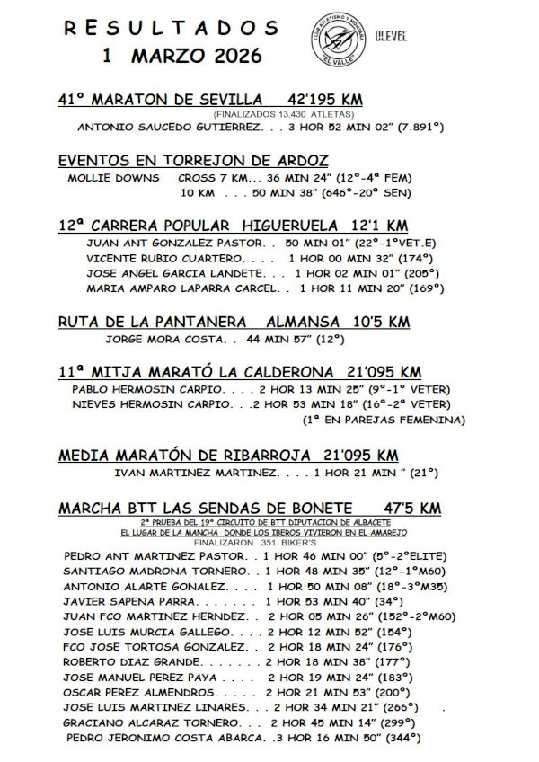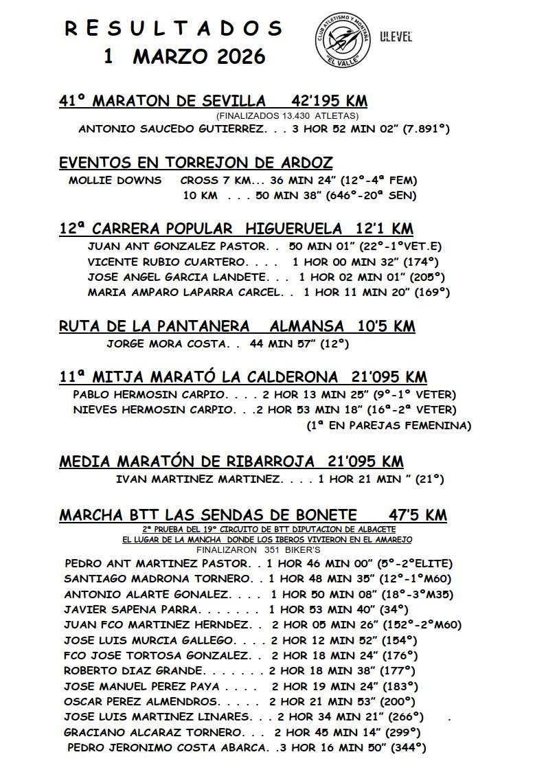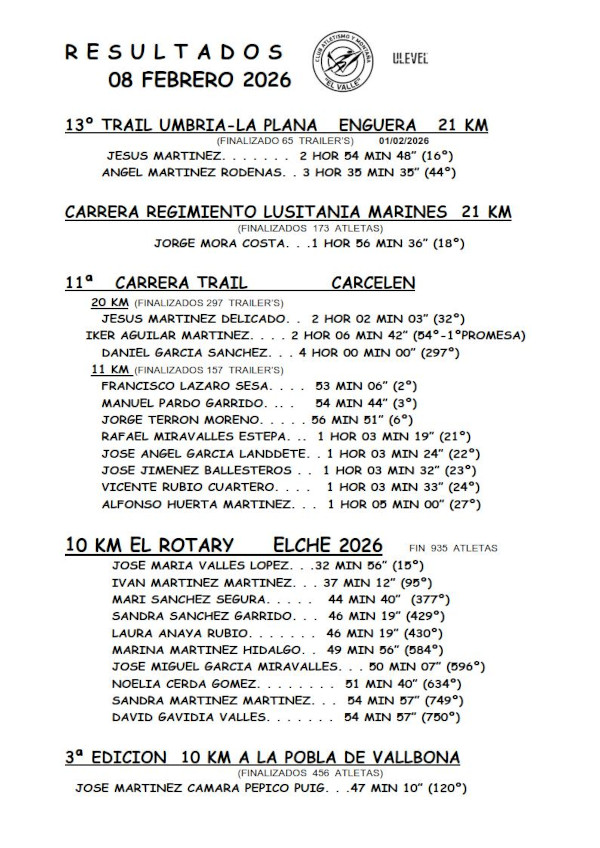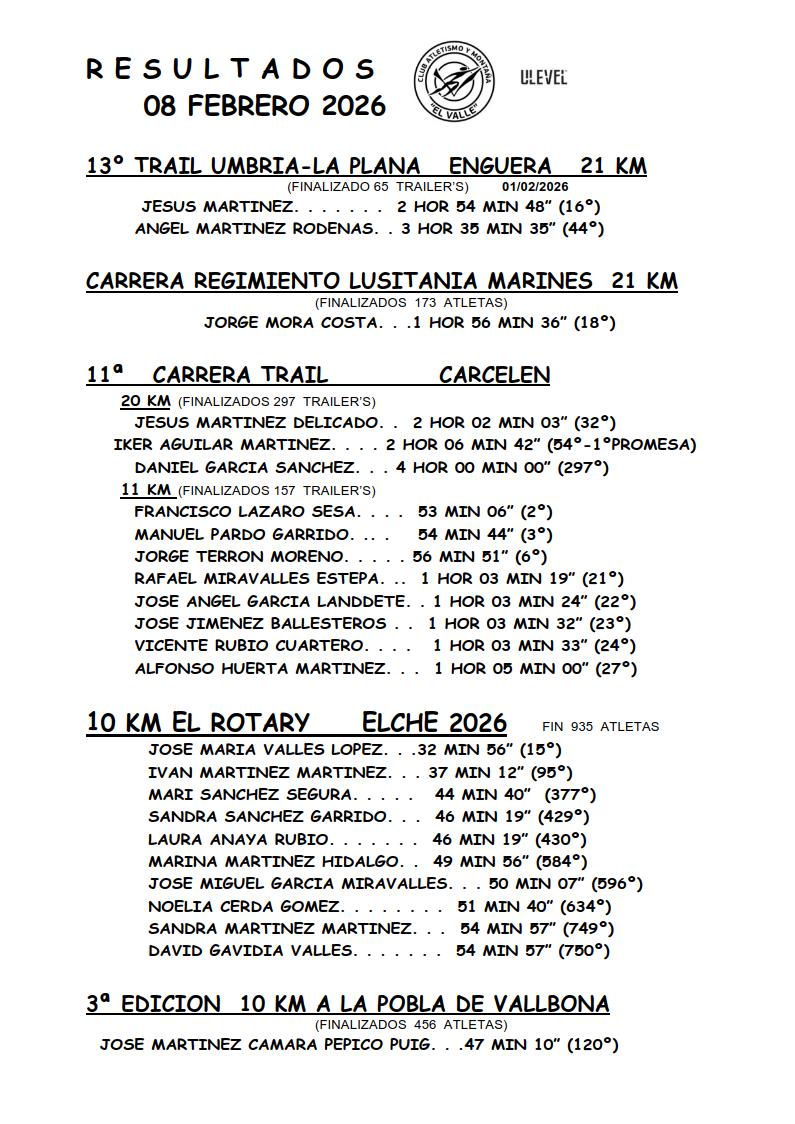 (8 y 16 euros SOCIOS Club Atletismo y Montaña El Valle)